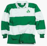 Halbro North America International Replica Jersey with 6" emerald and white hoops. Long-sleeve jersey embroidered with traditional team logo on left chest. White collar. 100% Cotton. Available in sizes S-2X. Add for 2XL.